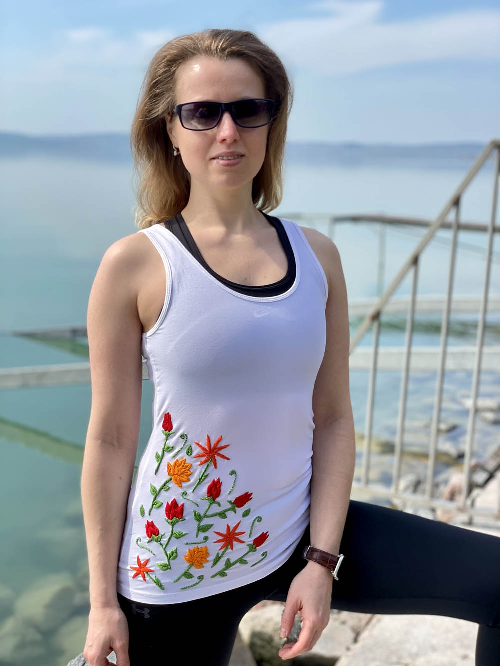 Anyaga: 100% pamut  Ujjhossz: rövid Kézi hímzés. Az ár tartalmaz egy díszcsomagolást és egy utánvétes csomagkézbesítést.